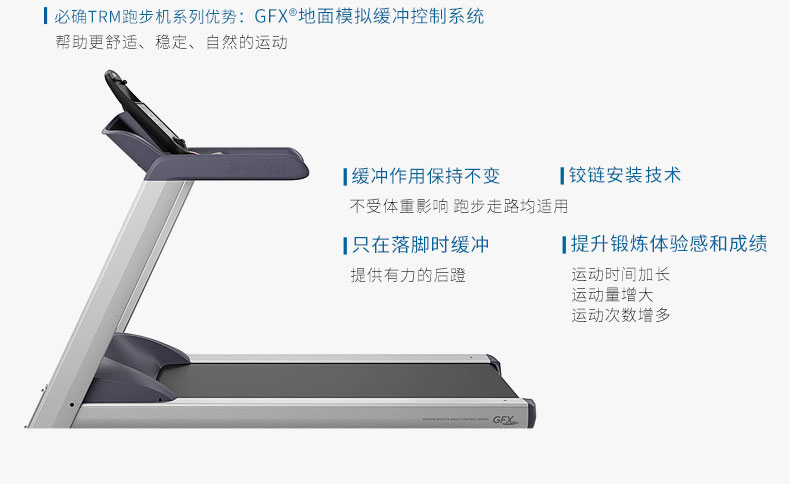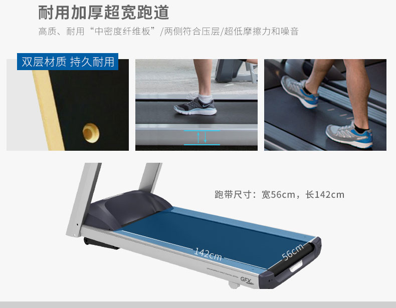 加厚超宽的跑道加上GFX地面模拟缓冲控制系统,享受更舒适稳定的运动。